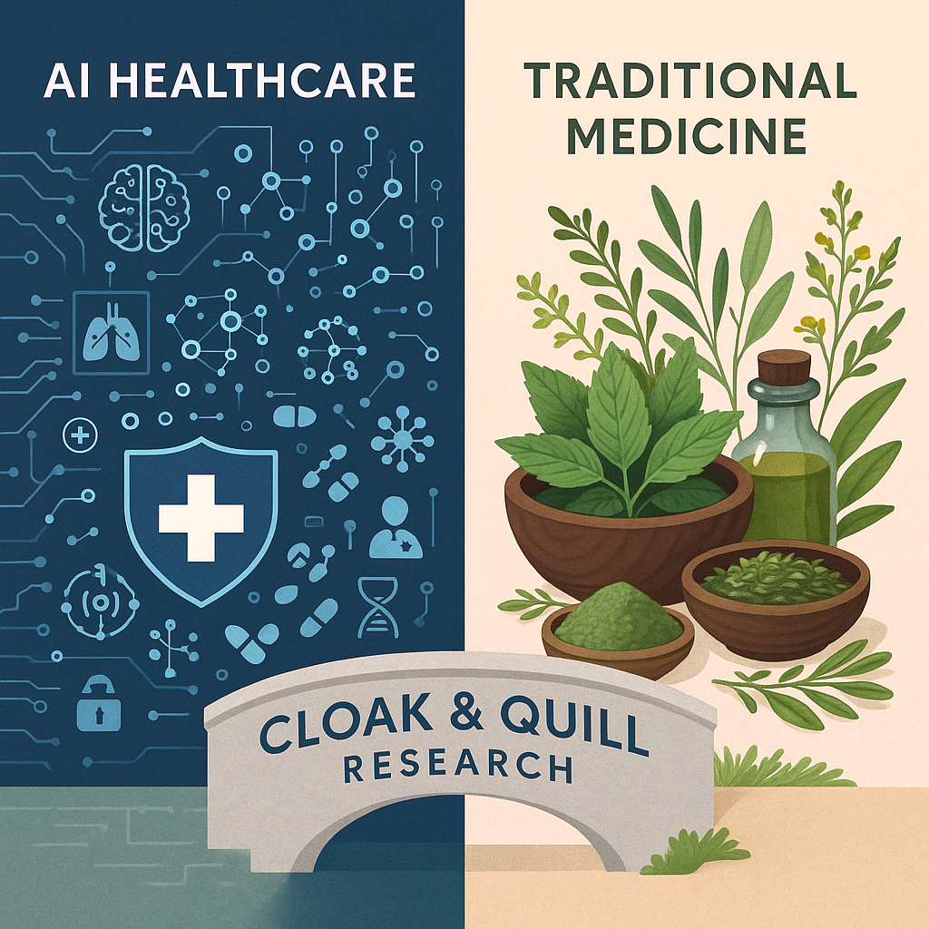 Cloak & Quill Research is a 501(c)(3) nonprofit organization dedicated to discovering, validating, and integrating natural therapeutics through advanced AI, systems biology, and traditional knowledge validation.